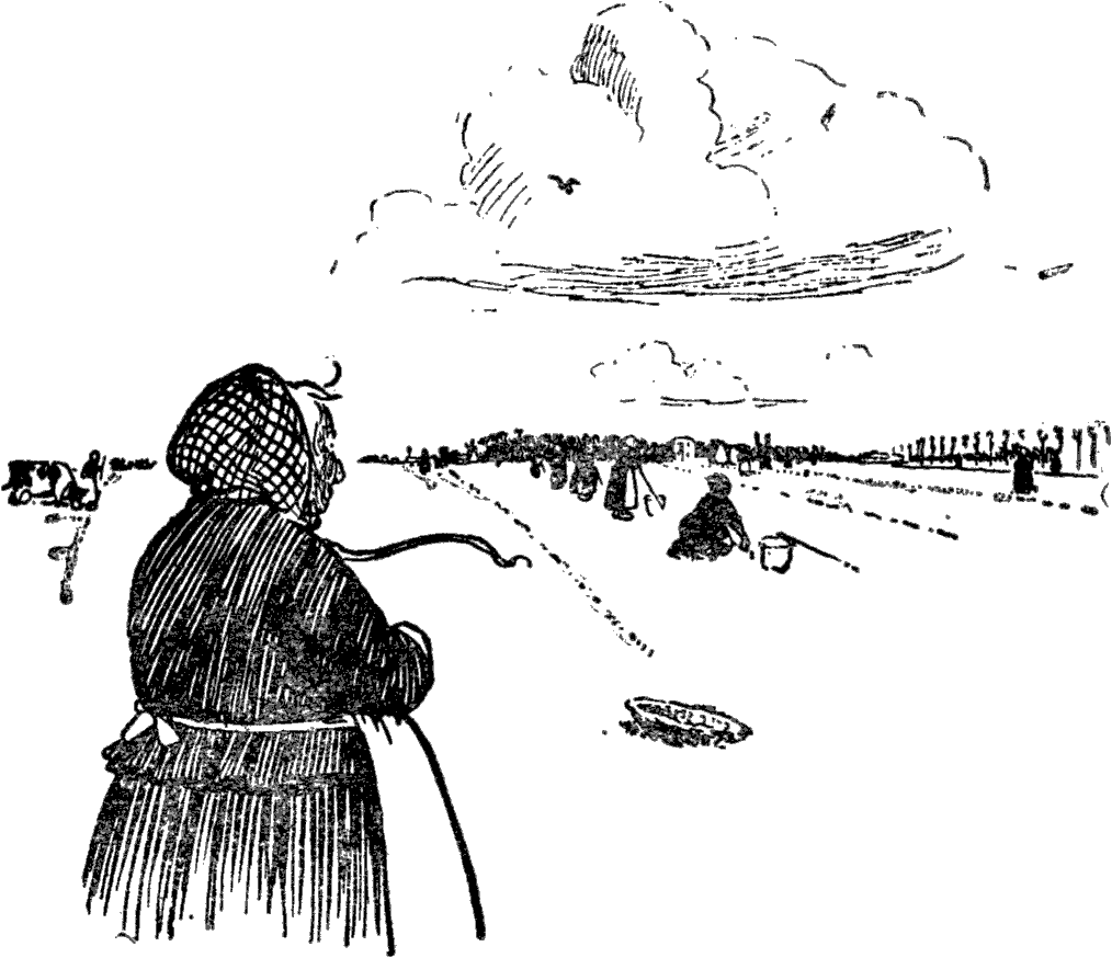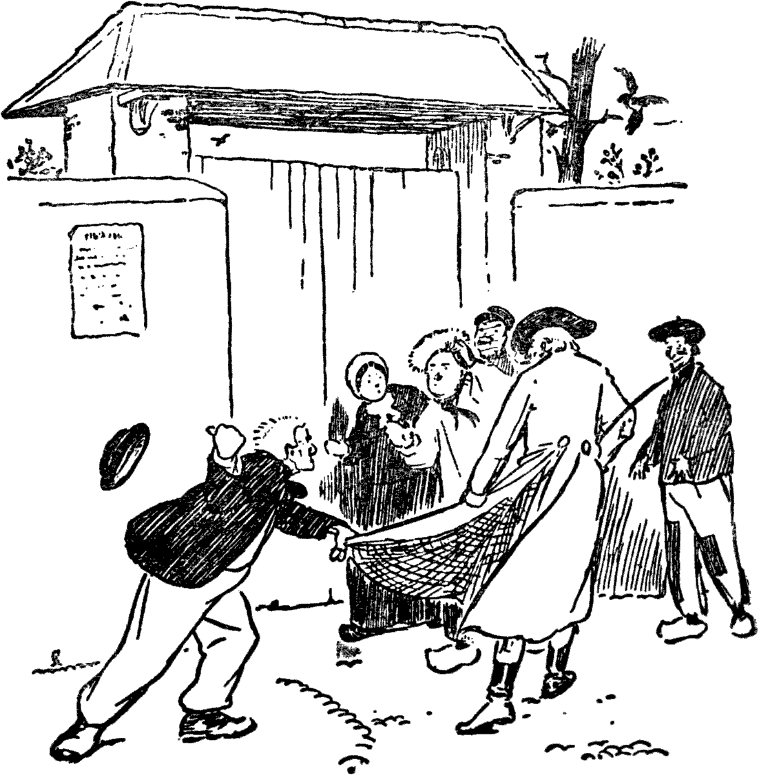 „Geen gekheid jongetje als 't je belieft,” zei de veldwachter en greep de kleine polsen stevig tusschen zijn gespierde vingers. „Ga nu maar heel bedaard mee, anders zal ik je wat geven dat je nog lang zou heugen.”