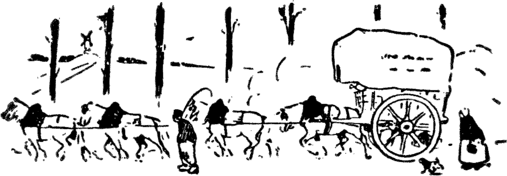 „Voorzichtig, Pak-an, voorzichtig,” riep Roybon, terwijl hij bedaard nader kwam, in ongeregelden pas stampend met zijn houten been over den weg. „Denk er aan, dat hij heelemaal bont en blauw is! En hij wou immers ook niet wegloopen; bewaar me neen. Hij begint juist een beetje van ons te houden.”