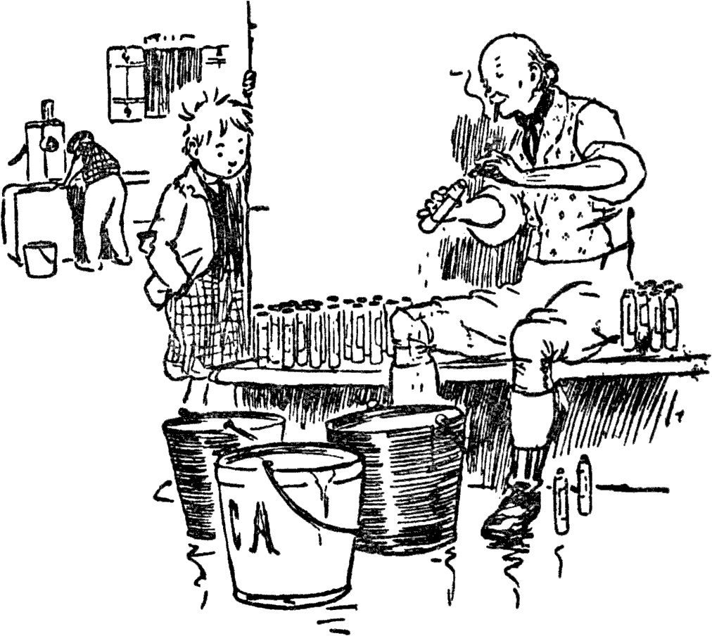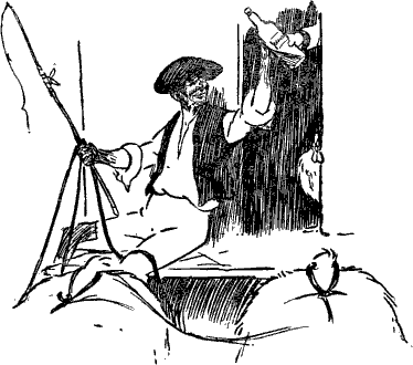 „Wat kan 't mij ook schelen,” morde hij, „of ze me zoeken of niet zoeken. 'k Heb hier genoeg te eten. Ze mogen thuis hun eten houden. 'k Ga niet weer naar huis; 'k bedank ze lekker. Om voor elke grap een draai om de ooren te krijgen, of erger nog! Ze mogen van mijn part ophoepelen. Ik zal voortaan wel voor mijzelf zorgen; ik ga de wijde wereld in. Geld heb ik genoeg. 'k Heb wel een heel kwartje in mijn zak.”