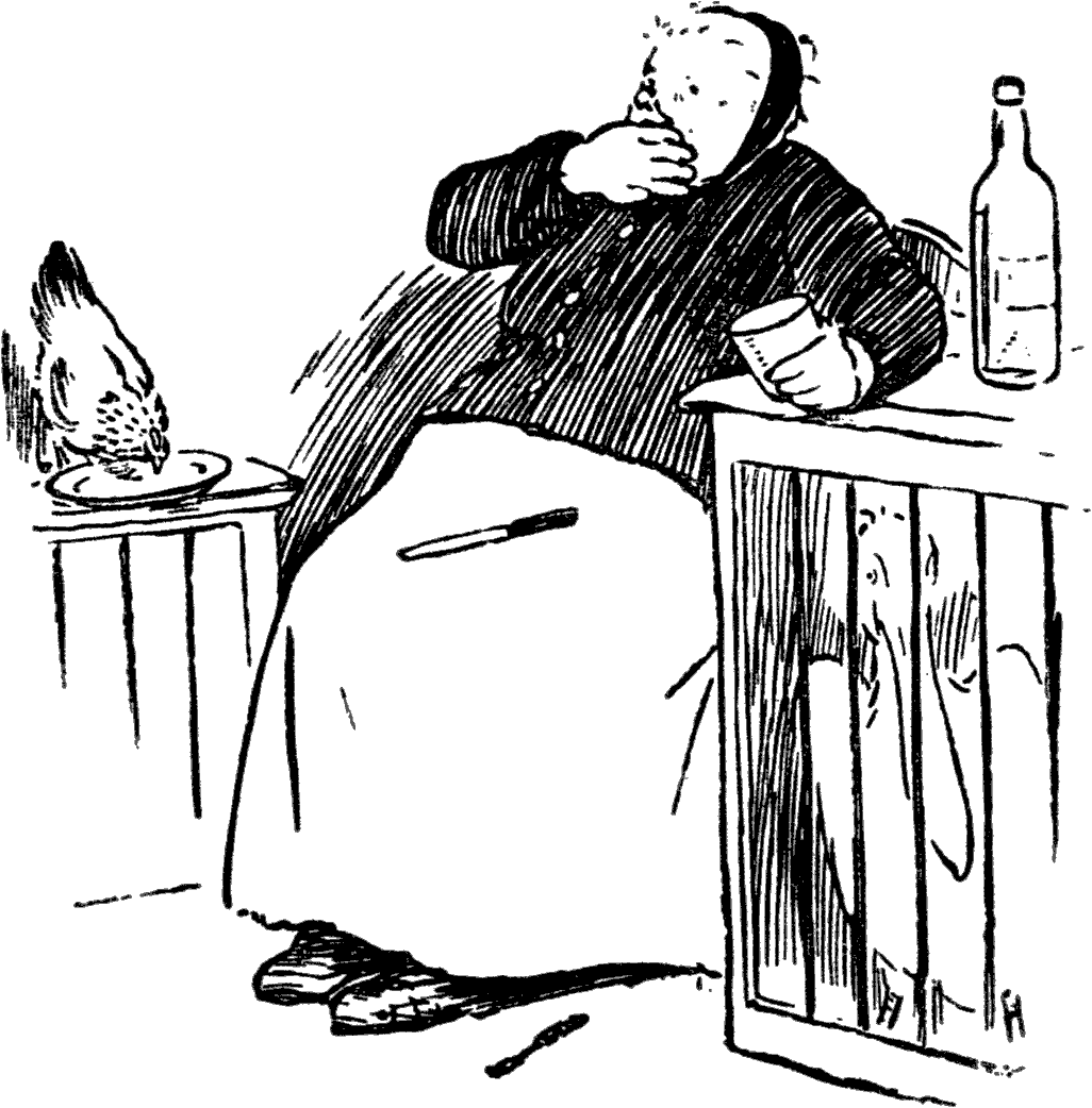 Eindelijk kreeg hij honger en daar zijn maag de eenige was aan wie hij altijd prompt gehoorzaamde, dacht hij er over, dat het nu langzamerhand tijd werd naar huis te gaan. Na eenige aarzeling overwon hij dan ook zijn trots en keerde terug.