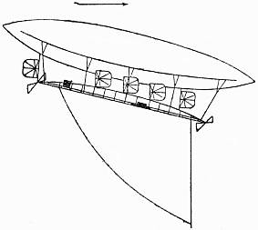 The experiments above named are, of course, of a nature interesting warfare by land. I cannot abandon this topic, however, without referring to one unique maritime advantage of the air-ship. This is its navigator's ability to perceive bodies moving beneath the surface of the water. Cruising at the end of its guide rope, the air-ship will carry its navigator here and there at will at the right height above the waves. Any submarine boat, stealthily pursuing its course underneath them, will be beautifully visible to him, while from a warship's deck it would be quite invisible. This is a well-observed fact, and depends on certain optical laws. Thus, very curiously, the twentieth century air-ship must become from the beginning the great enemy of that other twentieth century marvel—the submarine boat—and not only its enemy but its master. For, while the submarine boat can do no harm to the air-ship, the latter,[317] having twice its speed, can cruise about to find it, follow all its movements, and signal them to the warships against which it is moving. Indeed, it may be able to destroy the submarine boat by sending down to it long arrows filled with dynamite, and capable of penetrating to depths underneath the waves impossible to gunnery from the decks of a warship.