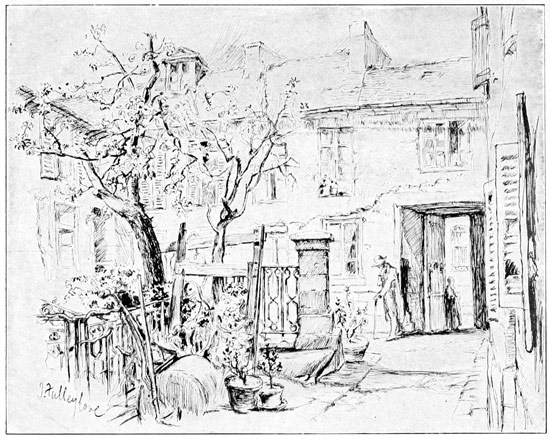 Once a week, while at the seminary, young Renan took an outing with the other pupils to its succursale at Issy. It is a dreary walk, along the wearisome length of Rue de Vaugirard, to the village to which Isis gave her name, when that goddess, once worshipped 23 in Lutetia, was banished to this far-away hamlet. There "Queen Margot" had a hunting-lodge and vast grounds, and when these were taken by the brothers of Saint-Sulpice, they saved the grounds and transformed the cupids on the walls of the lodge into cherubs, and the Venus into a Madonna. Now their new structures in Caen stone face the street named for Ernest Renan. In the gardens is a chapel built around the grotto, roofed with shells, wherein Bossuet and Fénelon used to meet, toward the end of the eighteenth century. There they doubtless began that controversy over the mystical writings of Madame Guyon, which ended in Fénelon's dismissal from the court through the influence of the imperious Bossuet. Under these trees that shaded them, walked Renan in his long and cruel conflict between his conscience and his traditions, most dreading the pain he would give his mother by the step he felt impelled to take. He took that step in October, 1845, when he laid aside the soutane—to be adorned and glorified by him, his teachers had hoped—and walked out from the seminary to a small hôtel-garni on the opposite side of Place Saint-Sulpice. Supported at first only by the savings of his devoted sister, Henriette, he started as a tutor, and began his life's pen-work, in a cheap pension, in one of the shabby houses just west of Saint-Jacques-du-Haut-Pas, in Rue des Deux-Églises, now renamed Rue de l'Abbé-de-l'Épée.