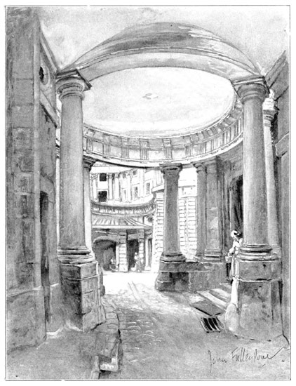 This faubourg has had no more striking figure than that of Prosper Mérimée, tight-buttoned in frock-coat, 20 and of irreproachable starchedness; with a curiously round, cold eye behind glasses, a large nose with a square end, a forehead seamed with fine wrinkles. It was his pride to pass as an Englishman in his walk. In his work, in romance equally with archæology, the gentleman prevails over the author, so that he seems to stand aloof, reserved, sceptical, correct; never showing emotion, never giving way to his really infinite wit and frisky mockery. He began his working-life in 1825, as a painter with his father, alongside the École des Beaux-Arts, at No. 16 Rue des Petits-Augustins, now 12 Rue Bonaparte. In 1840 he moved around the corner to No. 10 Rue des Beaux-Arts, half way between the school and his other place of work in the Institute, as Inspector of the Historical and Artistic Monuments of France. From 1848 to 1851 he was to be found at 18 Rue Jacob, and close at hand he found "l'Inconnue," at 35 of the same street. In 1852 he removed to his last residence at 52 Rue de Lille, on the corner of Rue du Bac. The Commune burned that house along with others adjacent, and until rebuilding began, long after, there stood in the ruins a marble bust on its pedestal, unharmed except for the stain of the flames. It was all that was left of Mérimée's great art-collection, with which, and with his books and cats, he had lived alone since his mother's death. He had gone away to Cannes to die in 1870. So that he did not see the ruins of the Empire, to which he had rallied, altogether from devotion to the Empress, whom he had 21 known in Spain when she was a child. He accepted nothing from the Emperor except the position of Librarian at Fontainebleau, and was as natural and sincere with the Empress, as he had been with Eugenie Montijo playing about his knee. In his other office he was a loyal servant of the State, and to his alert, artistic conscience France owes the preservation of many historic structures.
