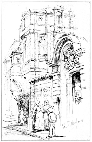 At this period only, he disappears from the Scholars' Quarter for a while. His earliest residence there was, soon after his marriage in 1827, at 23 Rue de l'Arbalète, a street named from the "Chevaliers de l'Arbalète," who had made it their archery grounds in mediæval days. The site of Michelet's residence is fittingly covered by a large school, on the corner of that street and of the street named for Claude Bernard. After a short stay in Rue des Fossés-Saint-Victor—that street nearly all gone now—he returned to this neighborhood, and settled in Rue des Postes, which, in 1867, received the name of the grammarian Lhomond. Otherwise, no change has come to this quiet street, lined with fifteenth and sixteenth century buildings, among which is the Hôtel Flavacourt, set in the midst of gardens. On its first floor Michelet lived from 1838 to 1850. At No. 10 is the arched gateway through 17 which he went, in its keystone the carved head of a strong man with thick beard and curling locks. Above the long yellow-drab wall shows the new chapel of the priests, who, with unknowing irony, have taken his favorite dwelling for their schools.