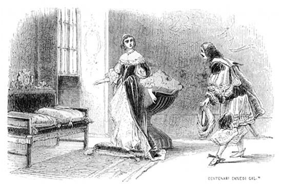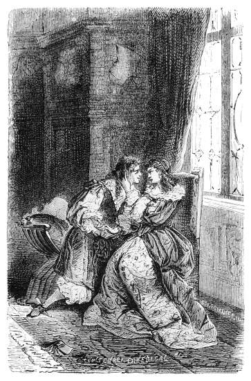 In questa, dall'uscio in fretta dischiuso, si precipita nella stanza una donna per grazia, per leggiadria, per giovanezza divina: mossa, o piuttosto spinta da qualche spirito soprannaturale, si abbandona nelle braccia del moribondo, che gliele tendeva nel delirio di un affetto che pare, — no, che per certo vince, almeno per alcuni istanti, la morte.