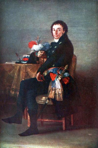 This personage, who has left no record in history, was one of those high functionaries, half civil and half military, whom the First Republic sent to its armies to supervise the commissary department and also to exercise an espionage over its generals. Goya has given a vigorous rendering of a head that bears the double stamp of energy and high breeding; and the prevailing gray tone of this portrait, relieved only by the one dash of brightness in the tricoloured scarf, forms altogether a work of perfect harmony.