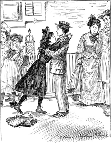 As he turned to avoid her, he heard his name called, and breaking from her mates, a slender little figure with big black eyes dropped her satchel and flung her arms around his neck, heedless of the merriment and jeers of her companions. Bird was found at last!
