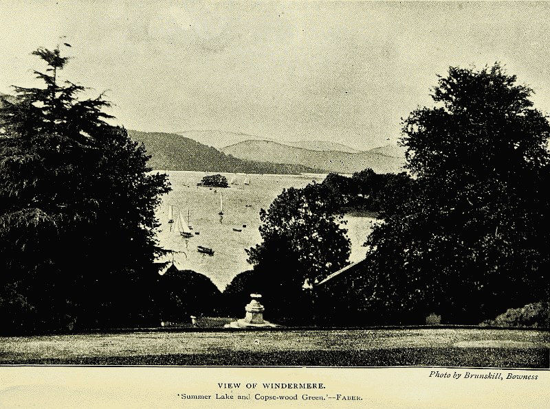 THIS lovely land of lake and mountain, dale and fell, in which my lot is happily cast in old age, is too full of literary and artistic memories, as well as ethnological and historic associations for anything to be given in great detail. Over and above the beauty of its scenery and the wealth of its natural productions, it offers to the traveller such visions and glimpses of eminent men and women in the world of letters as no other spot in the British Islands can show. Almost every village and hamlet has some connection with a departed worthy of whom it is still proud. Not to speak for the moment of the relation of Keswick to Coleridge and Southey, or of Grasmere to De Quincey and the Wordsworths, or of Coniston to Ruskin, of Ambleside to the Arnolds, or of Windermere to 'Christopher North,'—of all whom I have treated at length—we have roadside cottages, pleasant villas, and town houses, laying claim to special [234] distinction because someone of whom the nation is proud was born, or lived, or died there. At Ambleside, for instance, near to Fox How, dwelt William Edward Forster, the unfortunate statesman who would have been more happily remembered in Ireland, and in connection with national education by a larger section of his fellow countrymen, had he entertained, during his public career, the enlightened views of his devoted father, and the circle in which he and John Bright were trained. Near there, too, for a time, Felicia Hemans found a peaceful home, after her many trials, in a cottage still marked on the map as 'Dove's Nest,' a lovely retreat for a poetess, in good sooth. The archæologist Nicholson, poor in this world's gear, but rich in ancient lore, helps to complete the galaxy of 'bright particular stars' that clustered about the water-head of Winander.