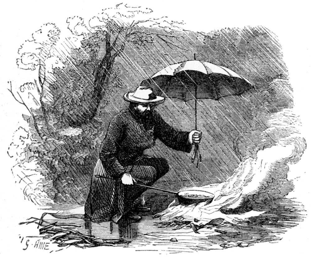 [11] I believe I am correct in stating that, in the French army, one soldier has to cook for a squad of sixteen men, while in camp: and that he has charge of two canteen kettles. I always saw five or six men cooking for a company in each kitchen; there were ten kitchens to a regiment of ten companies. This the soldiers told me themselves.