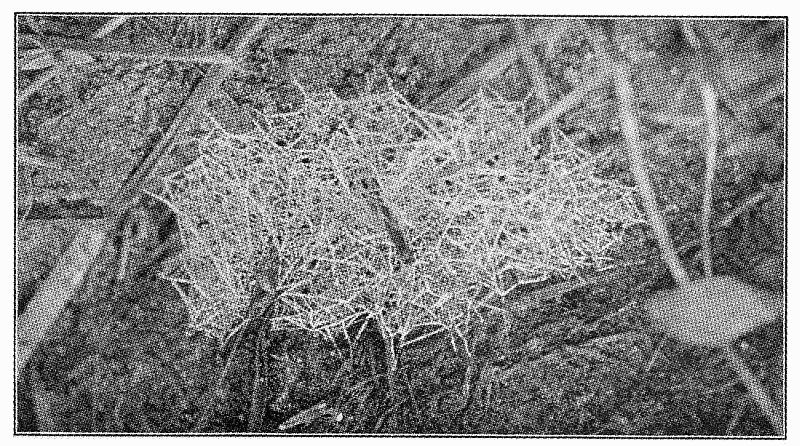 Fig. 495. Horizontal web of Uloborus near the ground, one side attached to a fallen
