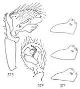 Page 187. Figs. 434, 435, 435a. Male palpi of Zilla.—434, Zilla atrica. 435, Zilla x-notata. 435a, Zilla montana.