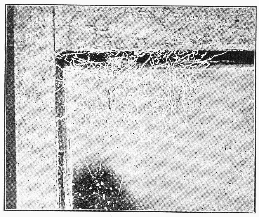 Fig. 471. Webs of Dictyna on the side of a house. The nests were in the groove