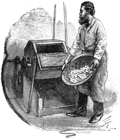 The poor Provençal, with his back against a palm tree, ate his dates, while he cast inquiring glances, now towards the desert for deliverers, now upon his terrible companion, to keep an eye upon her dubious clemency. Every time he threw away a date-stone, the panther fixed her eyes upon the spot with inconceivable mistrust. She scrutinised the Frenchman with a business-like attention; but the examination seemed favourable, for when he finished his poor meal, she licked his boots, and with her rough, strong tongue removed the dust incrusted in their creases.