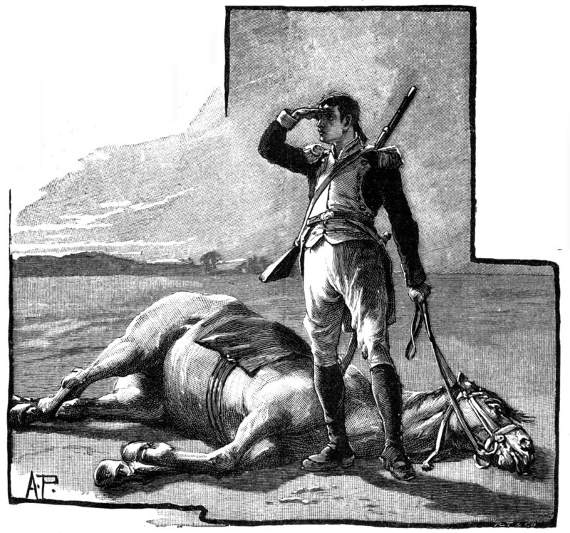 The soldier tried to come and go, and the panther let him, content to follow him with her eyes, but less after the manner of a faithful dog than of a great Angora cat, suspicious even of the movements of its master. When he turned round he saw beside the fountain the carcase of his horse; the panther had dragged the body all that distance. About two-thirds had been devoured. This sight reassured the Frenchman. He was thus easily able to explain the absence of the panther, and the respect[Pg 216] which she had shown for him while he was sleeping.