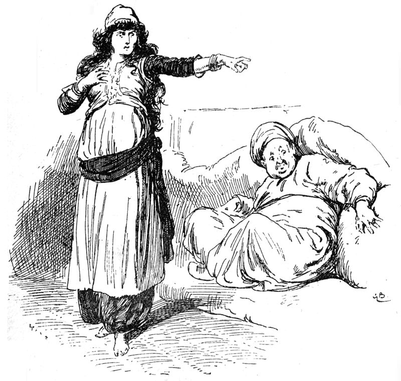 One day the Grand Vizier Darfoor Ali came to visit the worthy Barak Hageb, and while they sipped their coffee the guest spoke: "Verily," said he, "it is a piece of folly quite unworthy of you to keep so many wives. If, indeed, it were the custom with us, as among the Franks, to give wives for nothing, or even on occasion to pay a dowry to the husband, I should have nothing to say to it, for you would be richer than King Crœsus. But among us the world is topsy-turvy; we buy our wives, and generally pay money down. You have squandered vast sums in this way. If it had been your own money it would have[Pg 221] mattered nothing. But it is the nation's money that you have spent to buy more and more wives—that is where the mischief lies. A hundred warriors could be placed in the field for the price of one of your wives."