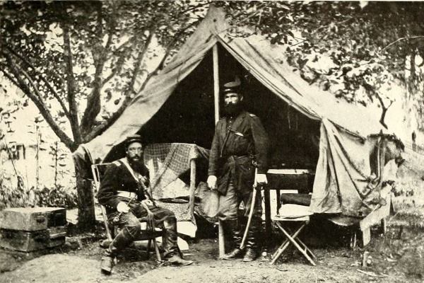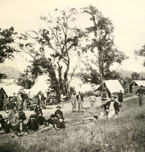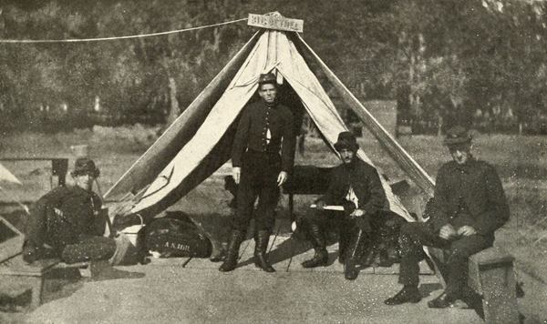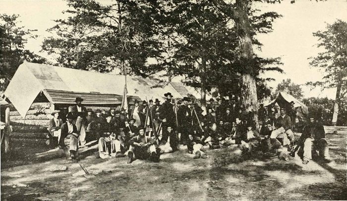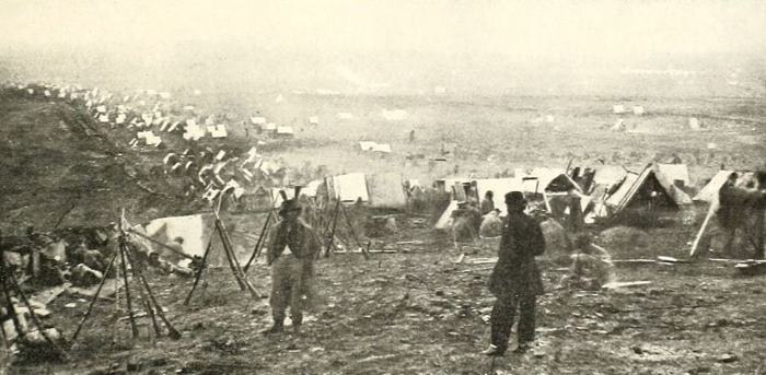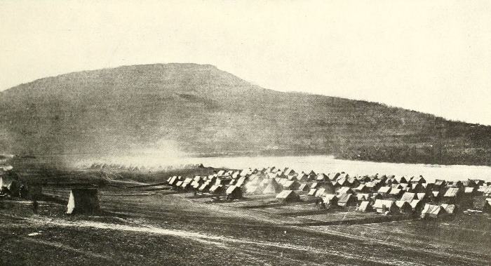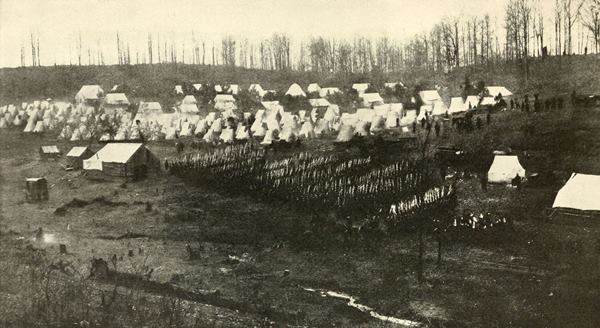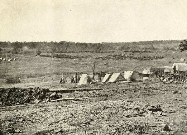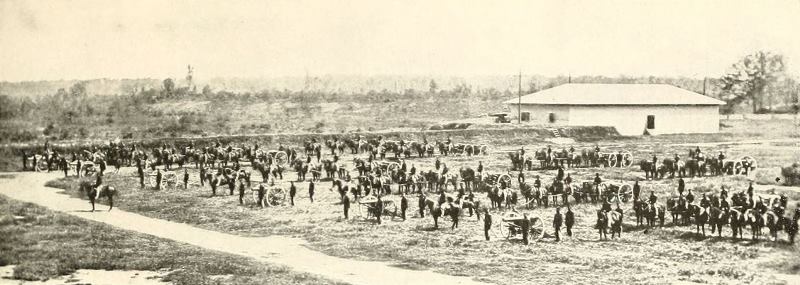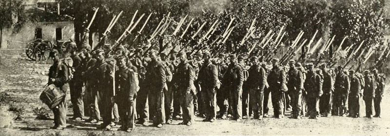 After a two days’ march, with “On to Richmond” as their battle-cry, the army halted at the quiet hamlet of Centreville, twenty-seven miles from Washington and seven miles from Manassas Junction where lay the waiting Confederate army of similar composition—untrained men and boys. Men from Virginia, from North and South Carolina, from the mountains of Tennessee, from Alabama, Mississippi, and Georgia, even from distant Arkansas, had gathered on the soil of the Old Dominion State to do battle for the Southern cause. Between the two armies flowed the stream of Bull Run, destined to give its name to the first great battle of the impending conflict. The opposing commanders, McDowell and Beauregard, had been long-time friends; twenty-three years before, they had been graduated in the same class at West Point.