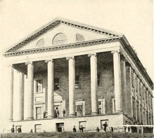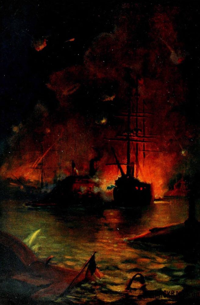 For the first time in the nation’s history the newly-elected President had entered the capital city by night and in secret, in the fear of the assassin’s plots. For the first time he had been inaugurated under a military guard. Then came the opening shots, and the ruined walls of the noble fort in Charleston harbor told the story of the beginnings of the fratricidal war. The fall of Sumter, on April 14, 1861, had aroused the North to the imminence of the crisis, revealing the danger that threatened the Union and calling forth a determination to preserve it. The same event had unified the South; four additional States cast their lot with the seven which had already seceded from the Union. Virginia, the Old Dominion, the first born of the sisterhood of States, swung into the secession column but three days after the fall of Sumter; the next day, April 18th, she seized the arsenal at Harper’s Ferry and on the 20th the great navy-yard at Norfolk.
