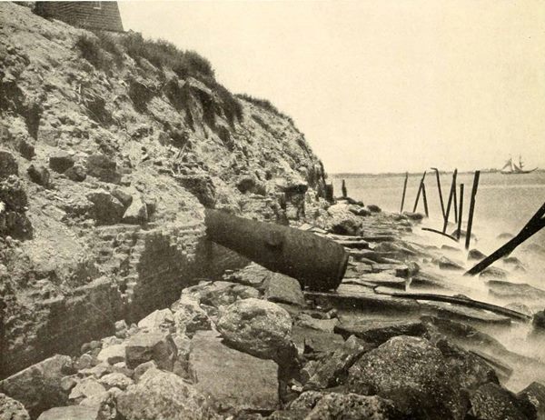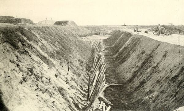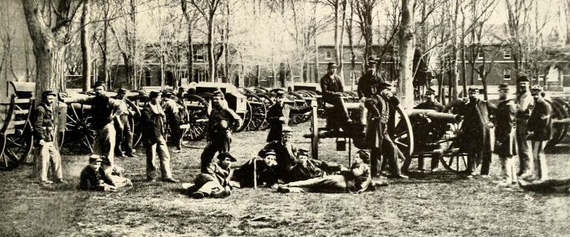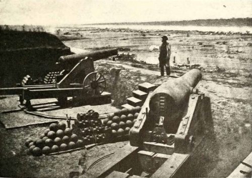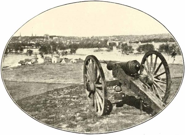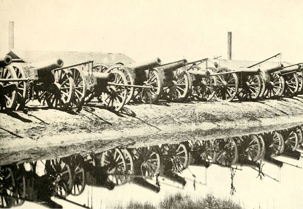 Never again to be used by brother against brother, these Confederate guns captured in the defenses about Richmond are parked near the wharves on the James River ready for shipment to the national arsenal at Washington, once more the capital of a united country. The reflection of these instruments of destruction on the peaceful surface of the canal is not more clear than was the purpose of the South to accept the issues of the war and to restore as far as in them lay the bases for an enduring prosperity. The same devotion which manned these guns so bravely and prolonged the contest as long as it was possible for human powers to endure, was now directed to the new problems which the cessation of hostilities had provided. The restored Union came with the years to possess for the South a significance to be measured only by the thankfulness that the outcome had been what it was and by the pride in the common traditions and common blood of the whole American people. These captured guns are a memory therefore, not of regret, but of recognition, gratitude, that the highest earthly tribunal settled all strife in 1865.