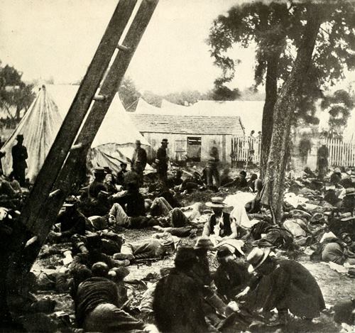 In vain McDowell and his officers attempted to rally his panic-stricken men and re-form his lines. Only the regulars,[Pg 20] about sixteen hundred in number, were subject to the orders of their superiors, and they made a brave stand against the oncoming foe while they covered the retreat of the disorganized mass. On the Henry hill were the two powerful batteries of Griffin and Ricketts. They had done most valiant service while the tide of battle ebbed and flowed. But at last their hour had come. A Confederate regiment, dashing from a neighboring hill, poured in a deadly volley, cut down the cannoneers almost to a man, killed their horses, and captured the guns. A few minutes later General Beauregard rode up to the spot and noticed Captain Ricketts lying on the ground, desperately wounded. The two men had been friends in the years gone by. Beauregard, recognizing his old friend, asked him if he could be of any service. He then sent his own surgeons to care for the wounded captain and detailed one of his staff to make him comfortable when he was carried to Richmond as a prisoner of war.