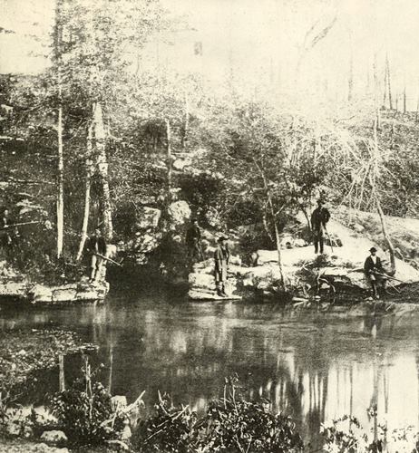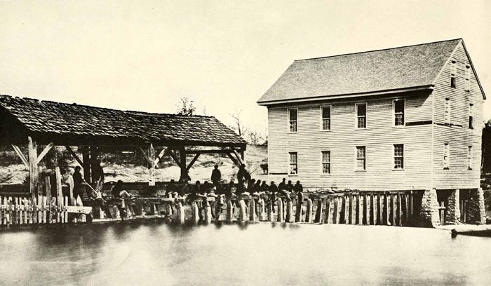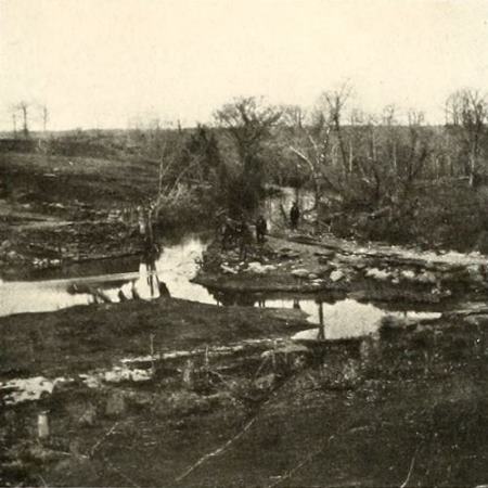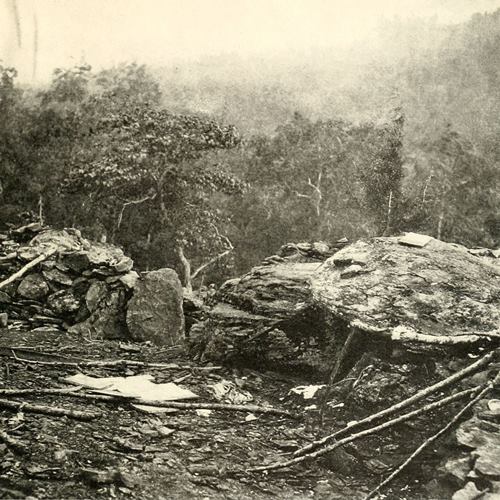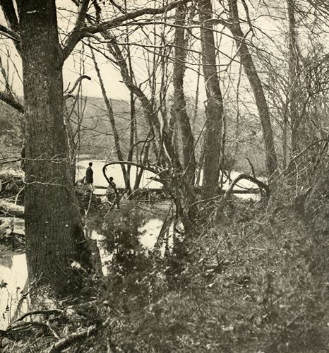 Tyler reached the Stone Bridge before six in the morning and opened fire on a Confederate force under Colonel Evans on the other side of the run. For some time this was kept up, and Evans was much puzzled that the Federals did not attempt to cross the bridge; they merely kept up a desultory fire. The failure of the Union troops to advance led Evans to believe that Tyler’s attack was only a feint and that the real attacking force would approach from some other direction. This belief was confirmed when he descried a lengthening line of dust above the tree-tops far in the distance, north of the Warrenton turnpike. Evans was now convinced (and he was right) that the main Union army was marching to Sudley’s Ford, three miles above the Stone Bridge, and would reach the field from that direction. Quickly then he turned about with six companies of brave South Carolinians and a battalion of “Louisiana Tigers” and posted them on a plateau overlooking the valley of Young’s Branch, a small tributary of Bull Run. Here, not far from the Matthews and Carter houses, he awaited the coming of the Federals.