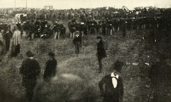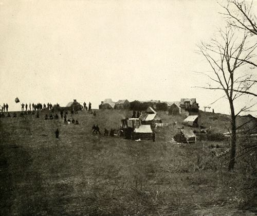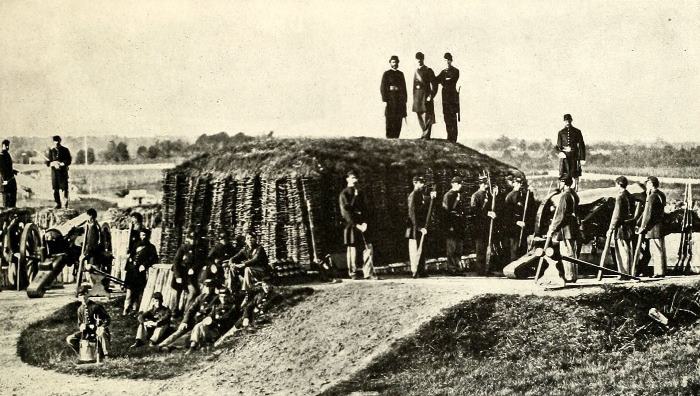 Suddenly there was a glimmer of the sunlight reflected from burnished steel among the trees. Then, in open battle array, the Federal advance guard, under the command of Colonel Burnside, emerged from the wood on a neighboring hill, and for the first time in the nation’s history two hostile American armies faced each other in battle array. At Fort Sumter only the stone walls had suffered; not a drop of human blood was shed. But here was to be a gigantic conflict, and thousands of people believed that here on this field on this day would be decided the fate of the Union and the fate of the Confederacy. The whole country awaited in breathless expectancy the news of this initial conflict, to become known as the battle of Bull Run.