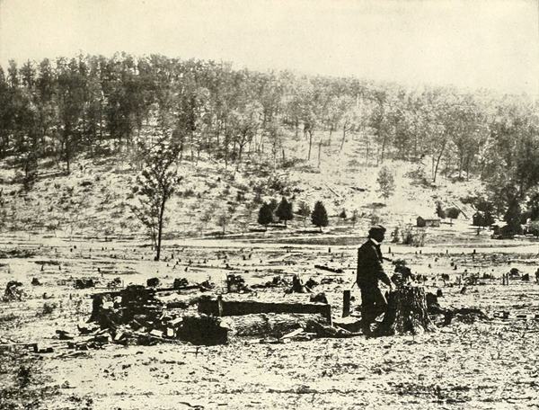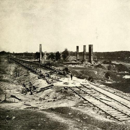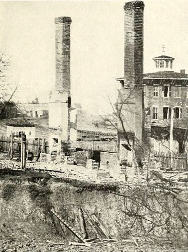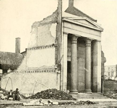 The sad significance of these photographs is all too apparent. Not only the bank buildings were in ruins, but the financial system of the entire South. All available capital had been consumed by the demands of the war, and a system of paper currency had destroyed credit completely. Worse still was the demoralization of all industry. Through large areas of the South all mills and factories were reduced to ashes, and everywhere the industrial system was turned topsy-turvy. Truly the problem that confronted the South was stupendous.