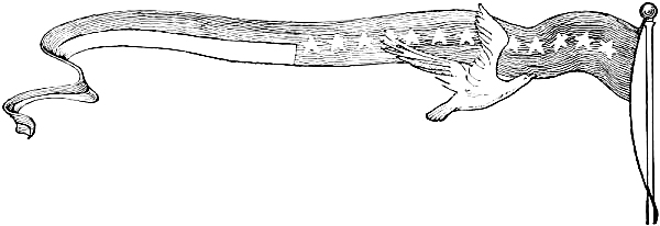 Knots of citizens still linger around the stands where Anderson, who had abandoned Sumter only six days before, had just roused the multitude to wild enthusiasm. Of this gathering in support of the Government the New York Herald said at the time: “Such a mighty uprising of the people has never before been witnessed in New York, nor throughout the whole length and breadth of the Union. Five stands were erected, from which some of the most able speakers of the city and state addressed the multitude on the necessity of rallying around the flag of the Republic in this hour of its danger. A series of resolutions was proposed and unanimously adopted, pledging the meeting to use every means to preserve the Union intact and inviolate. Great unanimity prevailed throughout the whole proceedings; party politics were ignored, and the entire meeting—speakers and listeners—were a unit in maintaining the national honor unsullied. Major Anderson, the hero of Fort Sumter, was present, and showed himself at the various stands, at each of which he was most enthusiastically received. An impressive feature of the occasion was the flag of Sumter, hoisted on the stump of the staff that had been shot away, placed in the hand of the equestrian statue of Washington.”