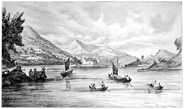 [14] "Mr Lay, who has been officiating as consul for some weeks, has been located in a miserable house built on piles on a mud flat, apart from the city, and above the bridge, where the tide, as it ebbs and flows, daily sweeps up to his door; and all efforts to obtain even decent accommodation in the city, where he is entitled to demand it, or in any but this pestilent locality, have been in vain."—'Times' Correspondent, Hongkong, October 22, 1844.