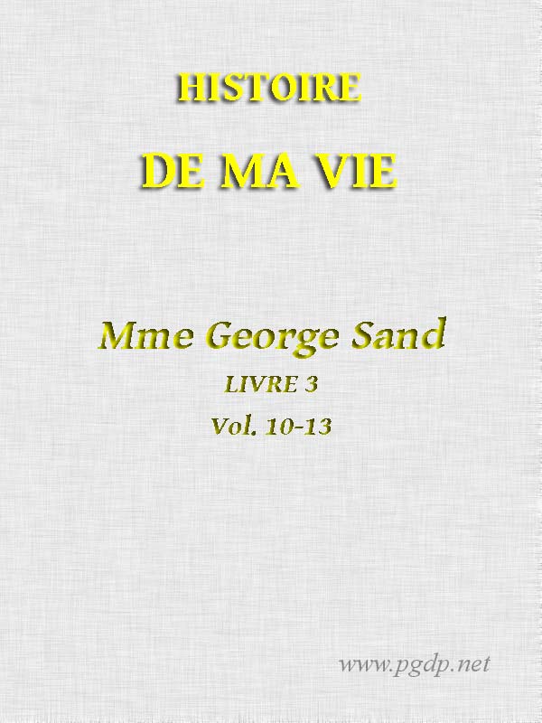 Je passai à Nohant l'hiver de 1822-1823, assez malade, mais absorbée par le sentiment de l'amour maternel, qui se révélait à moi à travers les plus doux rêves et les plus vives aspirations. La transformation qui s'opère à ce moment dans la vie et dans les pensées de la femme est, en général, complète et soudaine. Elle le fut pour moi comme pour le grand nombre. Les besoins de l'intelligence, l'inquiétude des pensées, les curiosités de l'étude, comme celles de l'observation, tout disparut aussitôt que le doux fardeau se fit sentir, et même avant que ses premiers tressaillemens m'eussent manifesté son existence. La Providence veut que, dans cette phase d'attente X p. 6 et d'espoir, la vie physique et la vie de sentiment prédominent. Aussi, les veilles, les lectures, les rêveries, la vie intellectuelle en un mot, fut naturellement supprimée, et sans le moindre mérite ni le moindre regret.