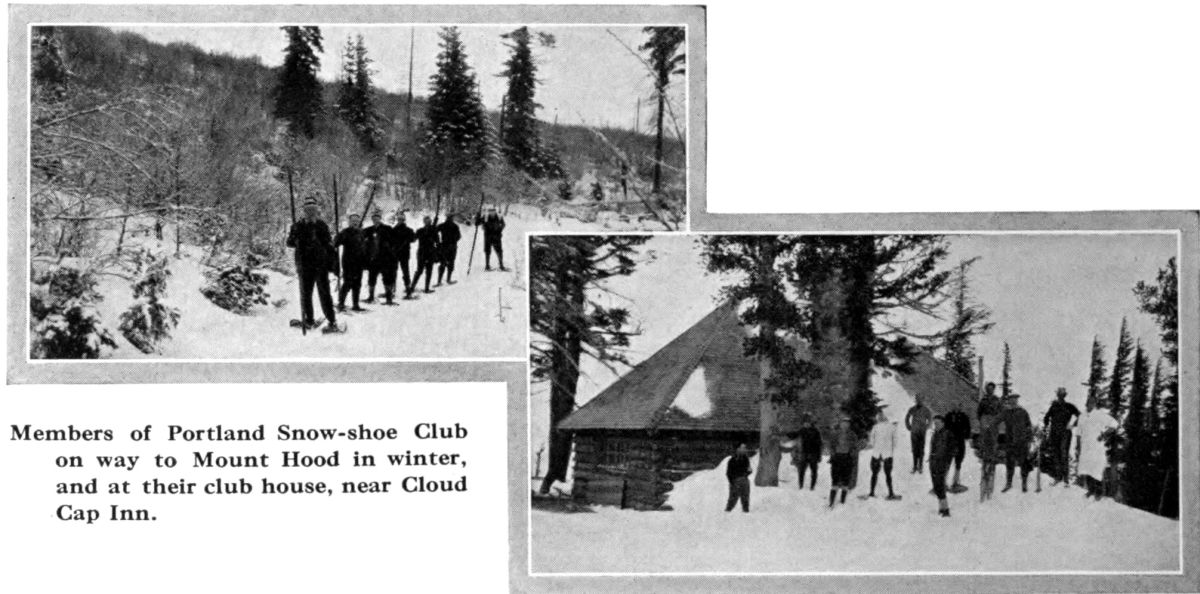The Portland Ski Club was organized six years ago, and has since made a trip to Government Camp in January or February of each year. The journey is made by vehicle until snow is gained on the foothills, at Rhododendron; the remaining ten miles are covered on skis. The presidents of the club have been: 1907, James A. Ambrose; 1908, George S. Luders; 1909, Howard H. Haskell; 1910, E. D. Jorgensen; 1911, G. R. Knight; 1912, John C. Cahalin.