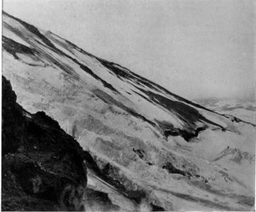 In choosing the illustrations, I have sought to show the individuality of each peak. Mountains, like men, wear their history on their faces,—none more so than Hood's sharp and finely scarred pyramid; or Adams, with its wide, truncated dome and deeply carved slopes; or St. Helens, newest of all our extinct volcanoes—if, indeed, it be extinct,—and least marred by the ice, its cone as perfect as Fujiyama's. Each has its own wonderful story to tell of ancient and often recent vulcanism. Let me again suggest that readers who would get the full value of the more comprehensive illustrations will find a reading glass very useful.