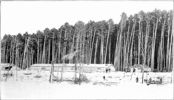 Although Mr. Higgins grew to manhood in a timber country, yet he never had visited a large lumbercamp until the winter following his residence at Barnum. In his youth he had logged in the forests of Dufferin County, Ontario, but the lumbering was on a small scale—it was only the logging of farmers. Around Barnum, Minnesota, the camps were operated by the lumber kings of the west. The winter's cut was counted in millions of feet, not by hundreds or thousands.