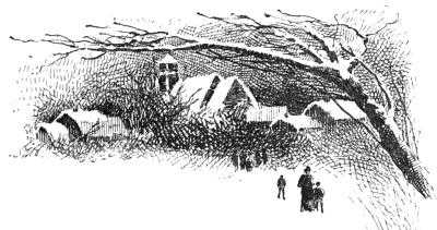 At that moment they were passing through a belt of woods where the brightness of the sky and the faint light of the rising moon made the shadows cower thick and black beside every log and snowy mound.