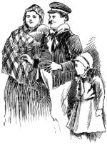 As the conductor held up these articles in his stiff, red fingers, turning the doll about so as to show her flaxen braid to the best advantage, and inducing the arms to take the positions alluded to, the Shadow crept away, and had well-nigh disappeared. But it returned again, thicker than ever, when he said, with a little choke in his voice, “I did mean to get ’em a little tree, with candles on it, and a picture-book or two; but our pay ain’t overmuch, and we had sickness, and—and”—he was very busy doing up the bundle, and very clumsy he must have been, too, for it was a long time before the wide-looped, single bow-knot was tied, and the parcel carefully put away again.