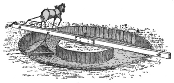 I have already spoken of the mode in which auriferous lode-stuff was treated in early times—i.e., by grinding between stones. This is also practised in Africa to-day, and we have seen that the Koreans, with Mongolian acuteness, have gone a step farther, and pulverise the quartz by rocking one stone on another. In South America the arrastra is still used, which is simply the application of horse or mule power to the stone-grinding process, with use of mercury.