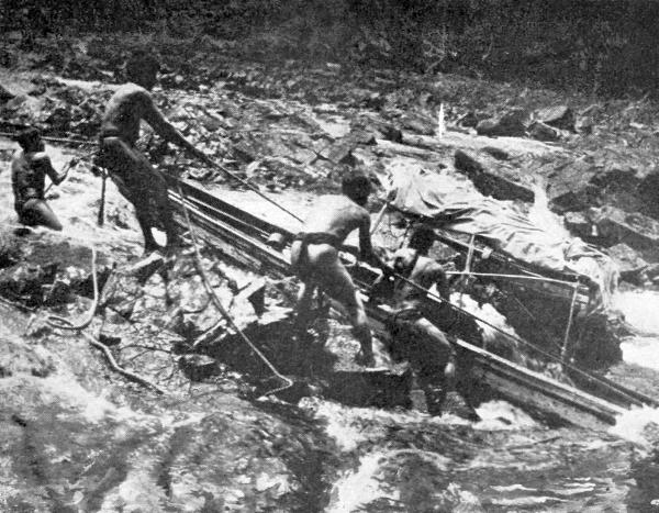 While we were engaging our staff the captain was getting boats for us. He selected a great fifty-foot boat seemingly as heavy as a locomotive. It looked like a crude craft, made of great thick planks. I soon learned the necessity of such a heavy boat. We also had a small boat for emergency and for little side trips here and there.
