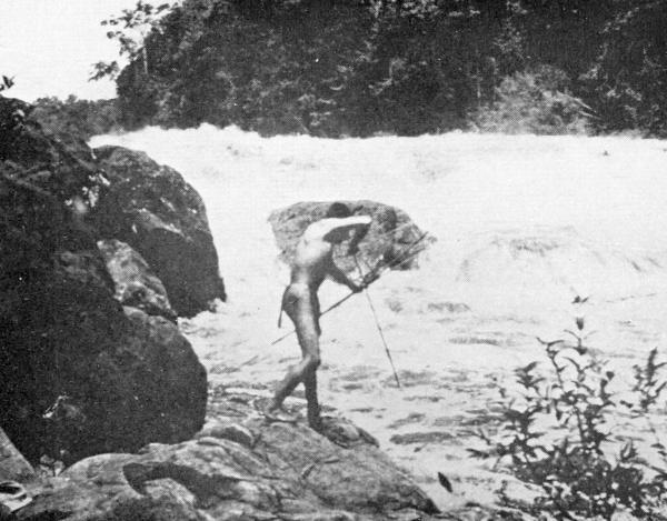 Probably the most interesting method of catching fish as practiced by these clever Indians was by means of poisoned grasshoppers. They made a paste of the leaves of the quanamia, a strong narcotic plant. Catching large grasshoppers they filled the stomachs of these insects with the paste and tossed them into the water. The fish would leap up and swallow the grasshoppers, only soon after to turn, belly up, and float on the surface where they were picked up.