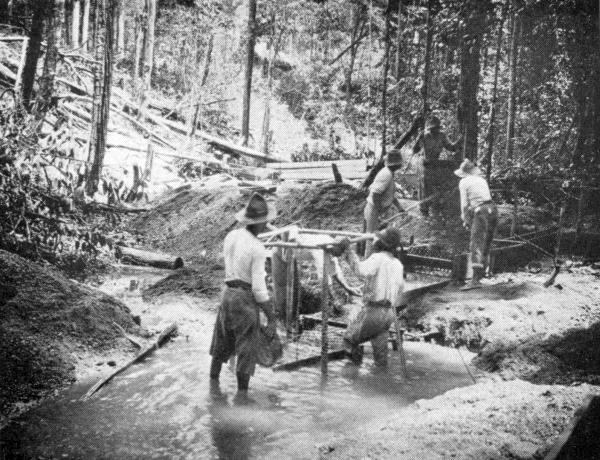 Finally the residue, after the gravel is washed out, is put in a sieve and either “jigged” by hand or by means of wire supports, over a box of water.