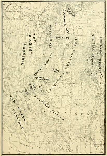 For the titles of works of reference, of the narratives of trappers, etc., I refer to the works of H. H. Bancroft; to Warren’s Memoirs, vol. i. Pacific Railroad reports; and to the first volume of Lieut. Geo. M. Wheeler’s report on Explorations West of the 100th Meridian. The trappers and prospectors who had some experience on the Green and the Colorado have left either no records or very incomplete ones. It seems tolerably certain, however, that no experience of importance has escaped notice. So far as attempts at descent are concerned, they invariably met with speedy disaster and were given up.