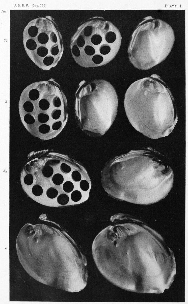 Of what advantage is it to the fishermen of the Wabash River, or to the State of Indiana, that shells are now more valuable, when a river that once supported a really important shelling industry is [5]now practically depleted? Wherein is the benefit to Illinois, when only one fisherman can engage in shelling to-day where six worked with profit five years ago? What profit will Arkansas find, when its rivers are now the scene of the most exhaustive mussel fishery ever known and the future is being robbed by the removal of infant shells that are shipped to the markets to be subsequently thrown into the discard by the manufacturers as too small for any useful purpose?