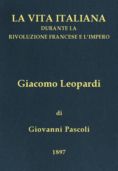 Project Gutenberg's Giacomo Leopardi (1798-1837), by Giovanni Pascoli