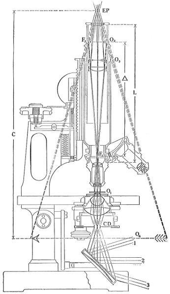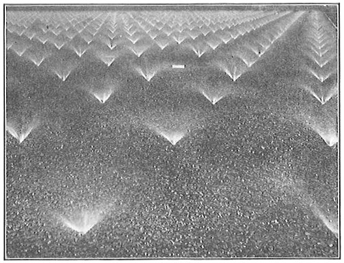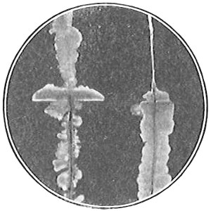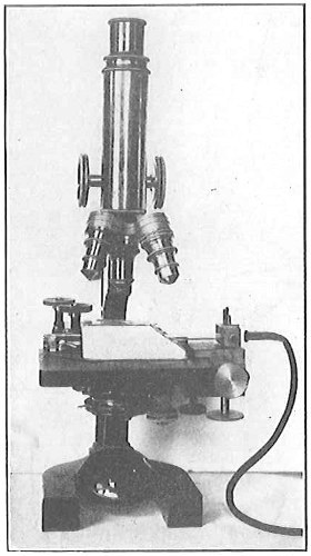 The work of Leeuwenhoek served to suspend for a time the subject of spontaneous generation, only to have it revived more vigorously later on. He is usually called “The Father of the Microscope,” though the compound microscope was invented probably by Hans Zansz or his son Zacharias, of Holland, about 1590. Leeuwenhoek used a simple lens, but his instruments were so much more powerful that they opened up an entirely new and unknown world. (Fig. 1.)