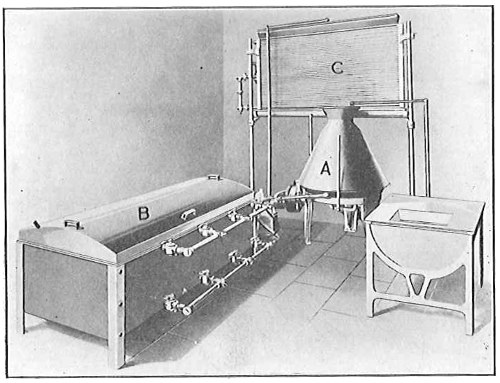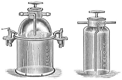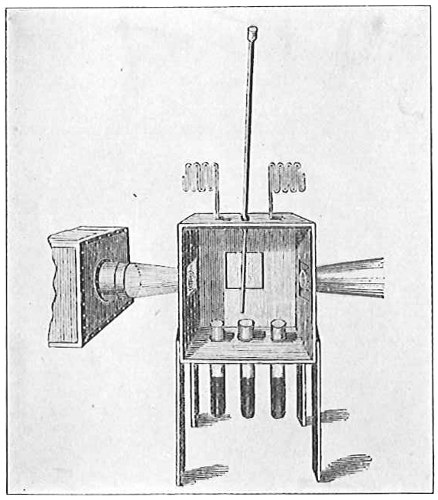 John Tyndall, in combating Bastian’s views showed that boiled infusions left open to the air in a closed box through which air circulated did not show any growth of organisms provided the air was so free of particles that the path of a ray of light sent through it from side to side could not be seen (Fig. 7). Or if such sterilized infusions were exposed to dust-free air, as in the high Alps, the majority showed no growth, while all infusions in dusty air did show an abundance of organisms. Tyndall’s experiments confirmed those of Pasteur and his predecessors and showed that the organisms developed from “germs” present in the air falling into the liquids and not spontaneously.