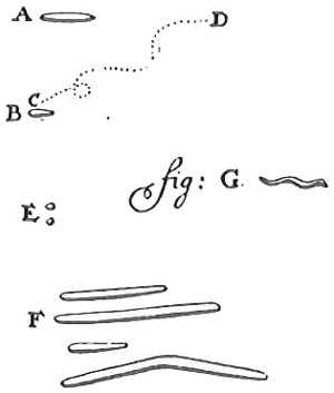 Anthony van Leeuwenhoek (1632–1723) was apprenticed to a linen draper and accumulated a comfortable fortune in this business. He became interested in the grinding of spectacle lenses, then an important industry in Delft, Holland, where he lived, and did a great deal of experimental work in this line, mainly for his own enjoyment. Finally he succeeded in making a lens so powerful that he could see in water and various infusions very minute living bodies never before observed. Leeuwenhoek contributed 112 papers to the Royal Society of Great Britain, the first in 1673, many of them accompanied by such accurate descriptions and drawings, for example a paper submitted September 12, 1683, that there is no doubt that he really saw bacteria and was the first to do so (Fig. 2). Rightly may he be styled “The Father of Bacteriology,” if not of the microscope. He says in one paper: “With the greatest astonishment I observed that everywhere through the material I was examining were distributed animalcules of the most microscopic dimness which moved themselves about in a remarkably energetic way.” Thus he considered these living objects to be animals, from their motion, and this belief held sway for nearly two hundred years.