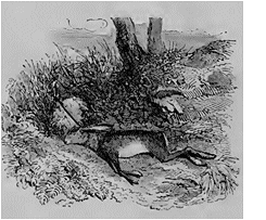 Traqué par le furet, il n'a d'autre ressource que de s'y précipiter et de tomber ainsi au pouvoir d'un ennemi non moins impitoyable que celui auquel il vient d'échapper.