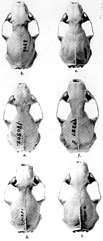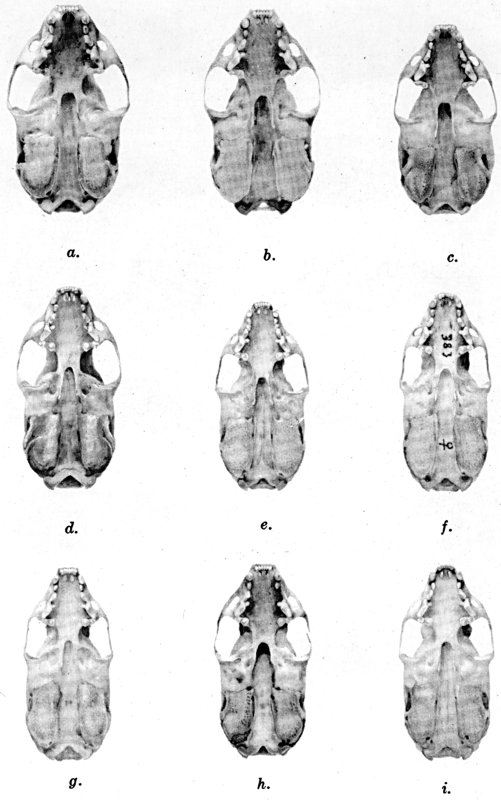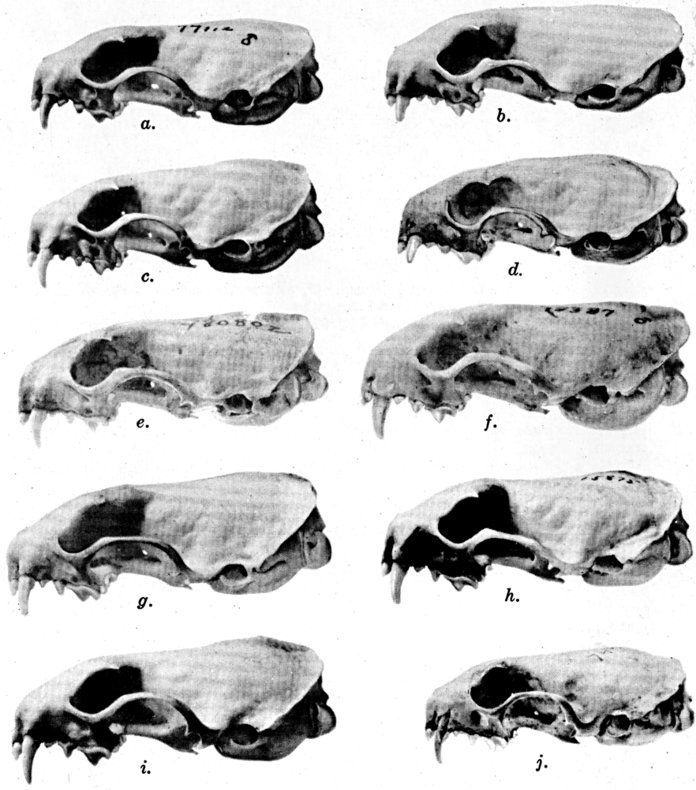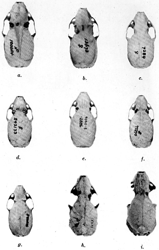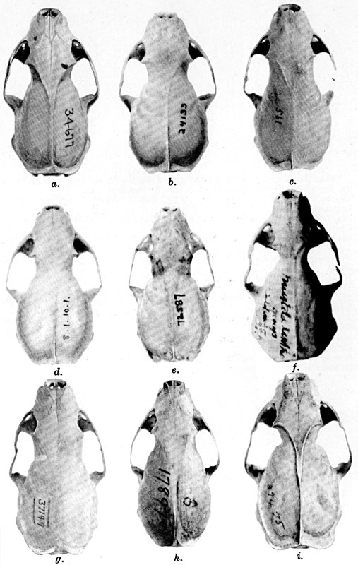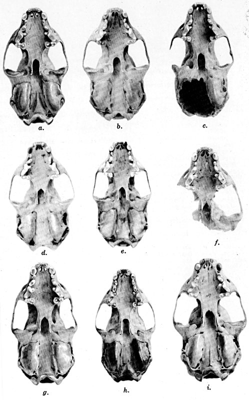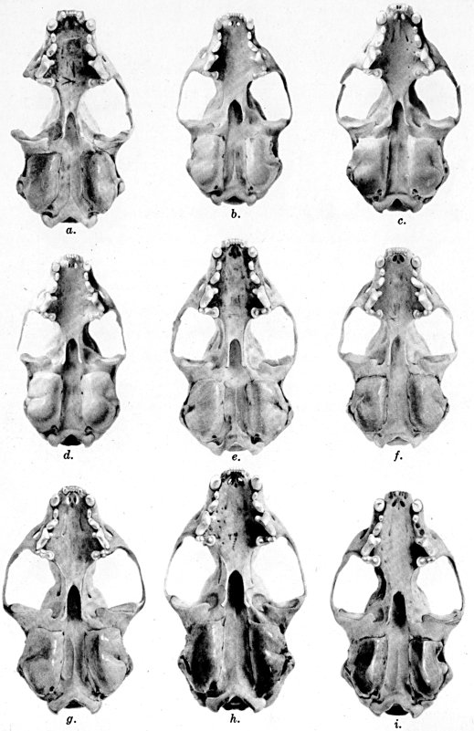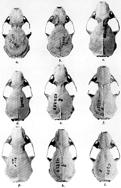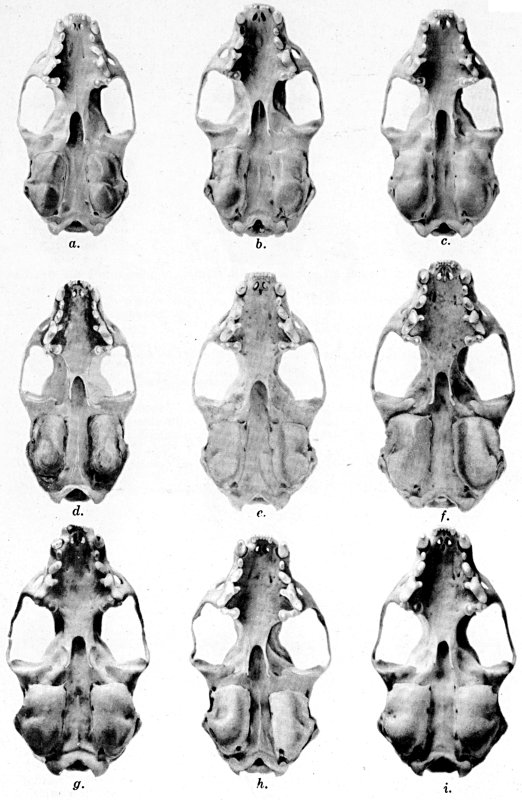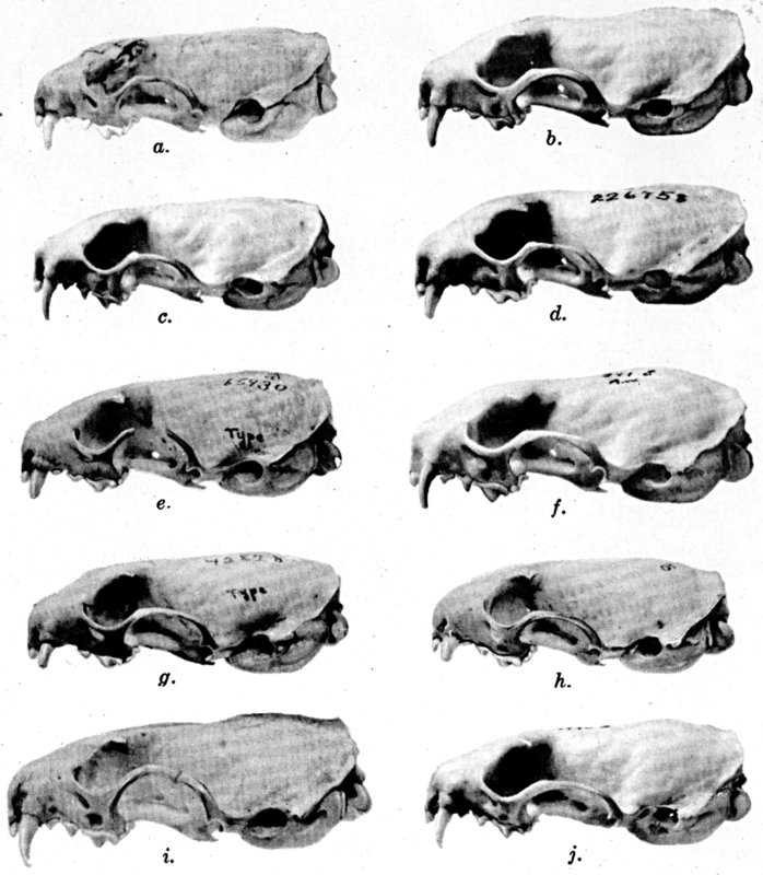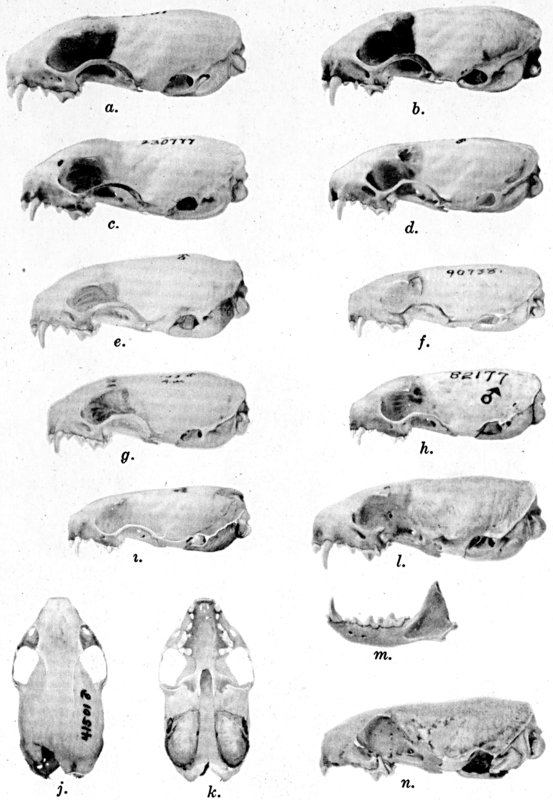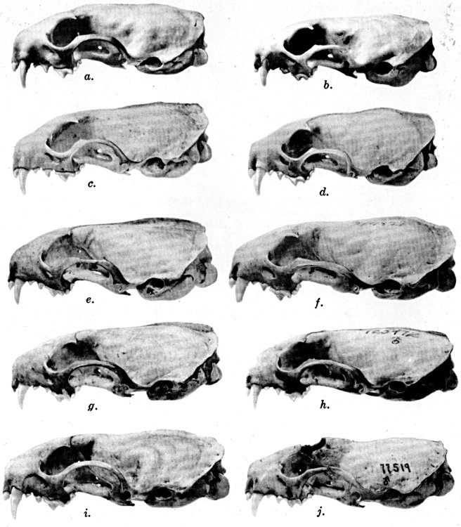As shown by rearing mammals from humid regions in arid regions, and vice versa, the color is not visibly altered in one or a few generations; the color is an hereditary character. Beginning with the southernmost subspecies (fig. 1) and continuing northward to the northern subspecies (fig. 10) there is a darkening, next a lightening, and finally a darkening closely conforming to amounts of precipitation in the geographic regions concerned. A fuller discussion of this correlation is given on page 51.