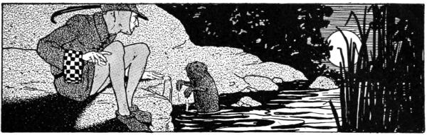 The fat, round-faced Moon Man smiled down from his home in the sky at the little figure in the road. His mouth seemed to move, and I am sure he was saying: