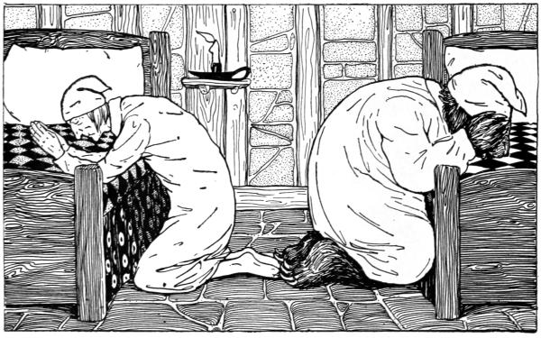That very day, when the little birds had gone to sleep in their nests, and the crickets chirped by the roadside, while night and the stars looked down upon the earth, the two tired and hungry boys appeared.