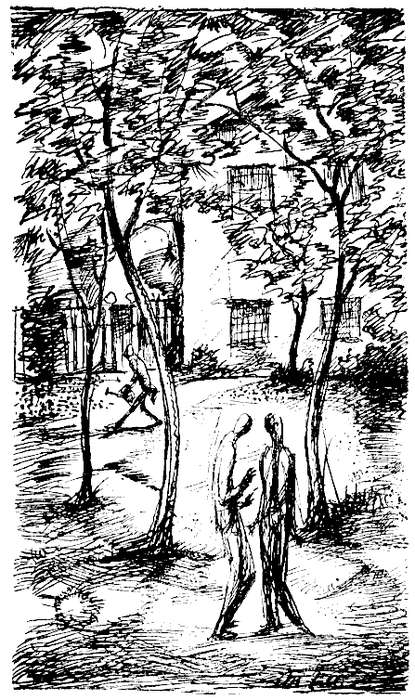 Es war noch Nacht, und alle Dinge sahen unwirklich und verzaubert aus. Zuweilen neigten sich die Gräser mit einem plötzlichen Ruck, ganz wie Schlafende sich neigen, die träumen, daß sie fallen, und dann spürte der Advokat einen kurzen warmen Hauch, der ebenso unvermittelt verschwand wie er kam. Am Himmel oben trieb eilig ein Gemisch von grauem und schwarzem Gewölk dahin, und im Zenit waren drei gelbe Sterne sichtbar, die in einer Richtung standen und wie ein fliegender Speer durch das Gewölk zu schießen schienen. Der Advokat betrachtete eine Weile aufmerksam den fliegenden Speer, und irgendein Gedanke rang in seinem Kopf. Dann eilte er mit kleinen, schlürfenden Schritten und so leise wie möglich über die sandbedeckten Wege des Anstaltsgartens dahin.