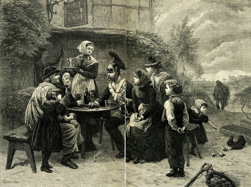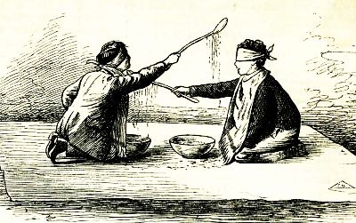 When dinner-time came an unforeseen trouble occurred to the boys: they could not go in a crowd to dinner, unless some boy felt like inviting the crowd to take dinner with him, and no boy felt justified in doing that unless he first asked his mother whether she had enough for so many; so the party divided, each boy retaining his trusty stick, and going with beating heart past every fence and wood-pile behind which he could not see.